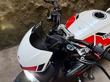 moto da vetrina ( a richiesta foto aggiuntive ) comprata da un amico con 9800km vendo per genere tutristico passaggio incluso cavalletto manutenzione posteriore, doppia sella, codino sportivo, borsetta da sella Kriega 6L con ganci, copri radiatore copri radiatore olio originale Triumph, para motore, Quick Shift Triumph, cartelletta originale Triumph e rispettiva documentazione, doppie chiavi piu chiave elettronica