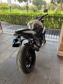 La moto monta marmitta SC-Project, cupolino, "ditale" sotto ai collettori di scarico, specchietti posizionati sotto al manubrio. Sono stati eseguiti diversi interventi importanti prima dell'estate: sostituzione di kit catena e pignone, intervento di tankerite al serbatoio, batteria sostituita/rigenerata da Triumph. Le gomme sono in buono stato. La moto è stata revisionata a febbraio 2025 ed è stato effettuato il tagliando completo prima dell'estate.