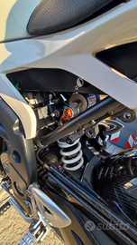 Monta pompa radiale Brembo personalizzata,kit parafango posteriore e copri catena carbonio( unico per questo modello) , mono ammortizzatore wp con regolazione compressione estensione precarico( a mezzo di rinvio esterno) più velocità dei fluidi, manubrio alluminio Rizoma, dado ruota monobraccio ergal kit dedicato, filtro lavabile, IAT migliorata, scarico completo racing zard omologato, portatarga e fanale per esaltare la coda corta, regolatore di tensione MOSFET.