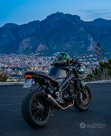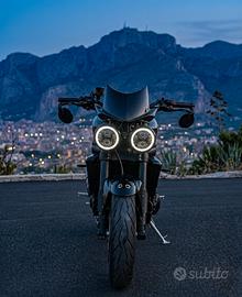 Triumph Speed Triple 1050 Restyling 2008-2010 — Full Black Build Vendo Triumph Speed Triple 1050, serie restyling 2008-2010, acquistata nel 2019 e tenuta sempre in box coperto. 60.000 km documentati, tutti su strada .. MAI PISTA! Tagliando eseguito ogni 5.000 km per tutta la storia della moto. Accessori aftermarket: - Scarico Zard con mappa dedicata e filtro sportivo BMC - Pedane arretrate e regolabili Rizoma - Fari LED con frecce integrate - Stop LED fumé con frecce integrate - Leve ridotte nere - Specchietti maggiorati stile café racer - Pedane posteriori in tinta - Batteria Lithium Ion HJTX14H-FP Manutenzione recente eseguita: - Catena distribuzione sostituita - Ruota libera sostituita - Termostato nuovo - Revisione forcelle completa - Lavaggio e spurgo radiatore completo - Tagliando completo con candele NGK Iridium e filtro BMC - Pastiglie freno anteriori 70%, posteriori 60% - Gomme montate 40% In regalo con la moto: - Secondo treno gomme SC0/SC1 al 90% — praticamente nuovo - Contamarce digitale da installare - Tutti gli accessori originali di serie Moto affidabile, pronta all'uso, senza nessun lavoro da fare. Targa visibile per qualsiasi verifica. Disponibili separatamente a trattativa: cambio completo, impianto elettrico completo e altri ricambi. Prezzo: 5.500€ - poco trattabile con persona seria e realmente interessata. Valuto permuta con Vespa 300, Beverly 350/400. No affaristi.