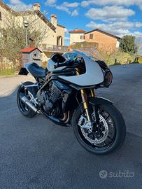 Vendo Triumph speed triple 1200 RR colore bianco e nero del 2022 con circa 7900 km, la moto monta più di 1500 euro di accessori tra cui scarico zard, emulatore valvola di scarico healtech, sprint filter p08 il tutto mappato a banco, specchietti Triumph bar end e Portatarga evotech performance ricavato dal pieno (solo questo più di 300 euro)