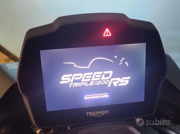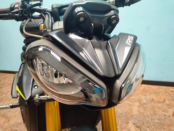 NOTE: Triumph Speed Triple 1200 RS MY 2025: la più potente, tecnologica e affilata di sempre! 183 CV a 10.750 giri/min e 128 Nm di coppia massima a 8.750 giri/min, potenza agli alti e grinta ai bassi. Cinque modalità di guida (Rain, Road, Sport, Track, Rider). Cornering ABS ottimizzato. Cornering Traction Control ottimizzato e disinseribile. Cambio quickshift (up and down). Front Wheel Lift Control. Sospensioni semi-attive Smart EC-3 Öhlins (personalizzabili su 7 parametri). Ammortizzatore di sterzo regolabile. Accensione, bloccasterzo e tappo del serbatoio con sistema di apertura keyless. Sistema frenante Brembo MCS con pinze Brembo Stylema. Connettività My Triumph. Silenziatore Akrapovic con guscio esterno e staffa in titanio. Manopole riscaldabili. Tamponi telaio e forcella. Sensori pressione gomme. Frecce dinamiche anteriori e posteriori. Portatarga Lightech. Parabrezza rivestito. Cupolino monoposto. Garanzia Triumph Just Ride (24+24 mesi). Completamente finanziabile, anche senza anticipo, con soluzioni flessibili e personalizzate. Servizio di consegna a domicilio in tutta Italia con trasportatori specializzati (costo da conteggiare a parte a seconda della distanza).
