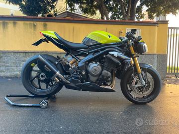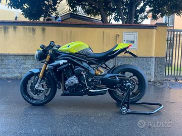 Triumph Speed Triple RX 1200 - Edizione Limitata 1200 moto al mondo Scarico Akrapovic, full öhlins elettroniche, semi manubri, chiave keyless, batteria litio e tanto carbonio di serie Immatricolata Ottobre 2025 - Unico proprietario Km percorsi: 1.100 Tagliando di fine rodaggio appena effettuato Bollo pagato per tutto il 2026 La moto è stata configurata con tutto il catalogo Ttiumph di accessori originali: - Kit biposto - Frecce dinamiche anteriori - Frecce dinamiche posteriori - Staffa silenziatore - Cupolino - Paraserbatoio - Protezioni telaio - Protezioni forcella - Tappo rifornimento olio - Cavo di ricarica batteria esterno Accessori Extra: - Pedane regolabili Bonamici - Protezioni motore Bonamici - Tappo olio Bonamici - Portatarga sportivo corto - Griglia protezione radiatore - Griglia protezione clacson - Griglia protezione regolatore di tensione - Grip laterali protezione serbatoio - Stabilizzatore alberino cambio - Cover monobraccio carbonio Lightech - Parafango posteriore carbonio Lightech Vendo per passaggio a moto da pista (Aprilia RSV4 BMW S 1000 RR Panigale V4 dal 2025 in poi)