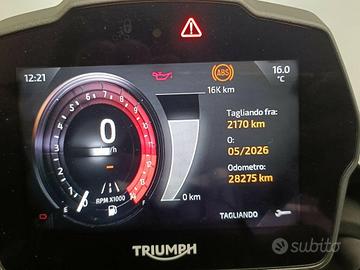 ABS, Controllo di trazione regolabile, 5 modalità di guida, Quickshifter, Sospensioni öhlins regolabili, TFT con connettività, Keyless, Cruise Control, Frecce a led, Fari a led, Parafango anteriore in carbonio (Originale Triumph), Unghia mono posto (Originale Triumph).