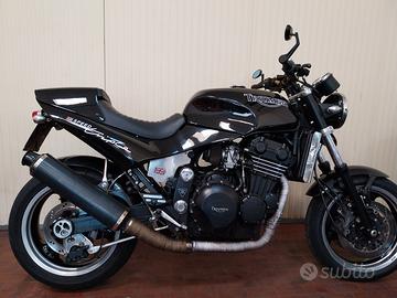una delle prime Speed Triple importate da Talamo con modifica coda corta da lui introdotta, esemplare da collezione, lo scarico è un 3in 1 ma con finale Triumph omologato, piccole modifiche di ciclistica che unitamente al manubrio alto la rendono guidabile come una naked moderna, tutto lavori effettuati da officina specializzata con particolari di pregio, in dotazione fari originali, semimanubri, scarico 3in due, accetto permute anche autovetture