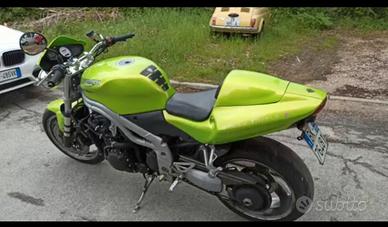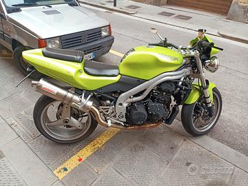 Triumph Speed Triple anno 2002. Ottima moto, la uso tutti i giorni casa lavoro nessun problema.Catena corona e pignone nuovi. Faro a LED per un valore di ? 100. Sella rifatta. Possibilità di scriverla ASI o FMI. Qualsiasi prova no affaristi .