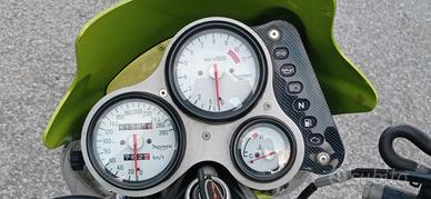 Triumph Speed Triple 955i, anno 1998, ottime condizioni motore e estetica con verniciatura originale (green roulette), assicurata storica, 65.000 km, gomma anteriore nuova, tagliandata, vendo completa di tutti i pezzi originali. (Marmitta specchietti e frecce).