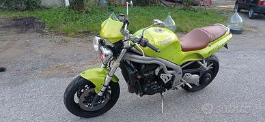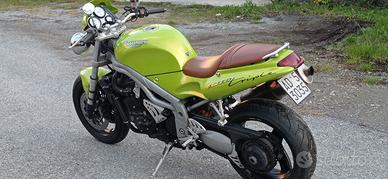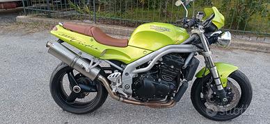 Triumph Speed Triple 955i, anno 1998, mai incidentato, vernice Green Roulette originale, ottime condizioni motore e estetica, tagliandata con forcelle anteriori rifatte, assicurata con polizza storica. Insieme alla moto consegno i pezzi originali. (Marmitta frecce e specchietti). Km. 58000.