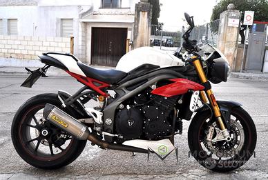 TRIUMPH SPEED TRIPLE R MOTORE 1050 133 CV IMMATRICOLAZIONE 03/2016 KM 50000 La Triumph Speed Triple R 1050 del 2014 e una naked sportiva iconica, famosa per il suo mix di potenza, agilita e design aggressivo. Questa versione "R" si distingue dalla standard per componenti di alta gamma, come le sospensioni Ohlins completamente regolabili (forcella NIX30 e monoammortizzatore TTX36), i freni Brembo monoblocco e dettagli in fibra di carbonio. Caratteristiche principali: Motore: Tre cilindri da 1050cc, 135 CV e 111 Nm di coppia, fluido e pieno su tutto l'arco di erogazione. Telaio: Leggero e rigido, garantisce grande stabilita e agilita in curva. Elettronica: Ride-by-wire, ABS di serie, quickshifter disponibile come optional. Design: Doppio faro anteriore distintivo, look aggressivo e materiali premium. Questa moto e perfetta per chi cerca una naked grintosa con prestazioni elevate e un sound inconfondibile. VISIBILE DAL VIVO PRESSO LA SEDE MOTORIUM DI TRICASE (le) via Leonardo da Vinci 31/b  E' NECESSARIO FISSARE UN APPUNTAMENTO AL Veicolo visionabile SU APPUNTAMENTO IMPORTO FINANZIABILE totalmente o parzialmente GARANZIA MECCANICA attivabile da 12 a 36 mesi SPEDIZIONE IN TUTTA ITALIA e ALL'ESTERO GESTIONE PRATICHE burocratiche , radiazioni e passaggi  ABS, Accensione elettrica,
