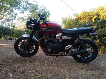 Triumph Speed twin 1200 accessoriata con: paracoppa, maniglie passeggero, staffe borse, lucchetto. Tagliandata e kit catena nuovo. Valuto scambi o permute con altre bicilindriche. No scooter, no cilindrate piccole, no BMW gs e simili.