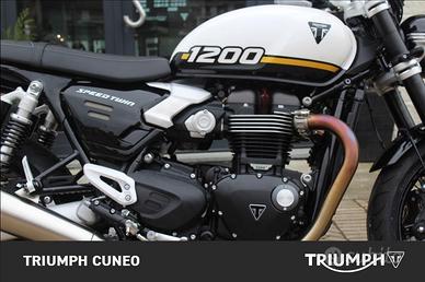 TRIUMPH Speed Twin 1200 Abs color bianca del 2025. Il motociclo è alimentato a Benzina e ha un cambio Meccanico. Pratica: TRIUMPH SPEED TWIN 1200 MOD 2025 (prezzo senza permuta)