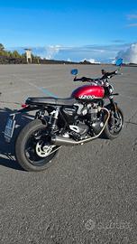triumph speed twin 1200 2025 immatricolata da concessionario triumph Catania unico proprietario moto nuova tenuta sempre in garage con poco più di 2000km primo tagliando eseguito dal concessionario prima della consegna. Parti aggiunte da me: ○ paraserbatoio originale triumph per modello my2025 ○ para radiatore originale triumph per modello my2025 Colore carnival red prezzo listino compresa di accessori 16.146€ vendo per cambio tipologia