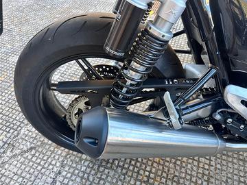 La combinazione perfetta tra design moderno e DNA autentico, prestazioni sportive e handling dinamico in una moto dallo stile classico e dal carattere unico!Questo look, arricchito con materiali e dettagli di alta qualità come i para tacco e la cornice del faro in alluminio, unisce alla perfezione il design moderno con i richiami alle moto classiche.