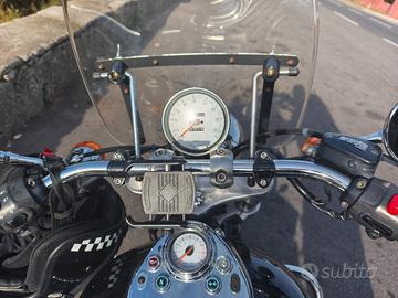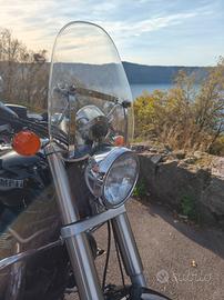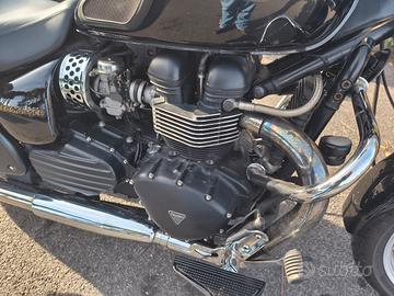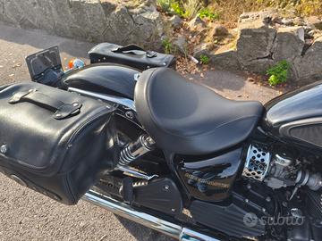 Scambio Triumph Speedmaster 800 35.500km del 2004 a carburatori. Doppie borse e singola in cuoio, scarichi aperti e cupolino basso. Già iscrivibile ASI o fmi poiché ventennale.