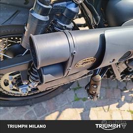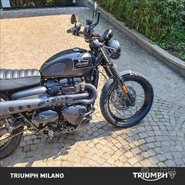 TRIUMPH Street Scrambler 900 color NERO del 2022. Il motociclo è alimentato a Benzina e ha un cambio Meccanico. Pratica: TRIUMPH STREET SCRAMBLER 900 DEPOTENZIATA A2, colore Nero, Top di gamma delle Scrambler medie di casa Triumph. Moto con SOLI 8832km. Moto in buone condizioni. Pneumatici al 90%. Completamente personalizzata dal nostro Alelier South Garage con painting integrale nero in doppia finitura, sella con imbottitura subblementare e rivestimento tecnico antiscivolo a coste, frecce a led Apollo Classic, scarico completo Zard ceramicato nero, coppia di ammortizzatori posteriori Bitubo Black, barre paramotore nere con faretti supplementari, specchietti bar-end in alluminio, griglia faro, oltre parafanghi anteriori e posteriorio in alluminio neri con portatarga corto e portapacchino posteriore. Storico Truimph. MOTO IN CONTOVENDITA, NON SI ACCETTANO PERMUTE. Visionabile presso Triumph Milano in via Eugenio Brizi, 4. Per maggiori informazioni