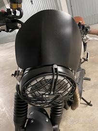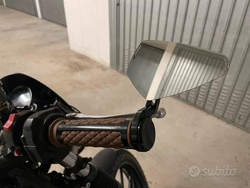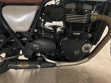 Vendo splendida Street/speed Twin, versione da 65 cv e 30 Nm di coppia. Adatta sia in città che per brevi escursioni. Customizzata dall'officina Punto Moto (Santa Maria di Sala), presenta le seguenti aggiunte: faro anteriore full led con griglia, cupolino in metallo Motone, specchi bar end Motogadget, manopole Barracuda, sella South garage molto confortevole, scarico corto con bendaggio termico e terminali Zard (sound spettacolare), fianchetti in alluminio spazzolato Zard, porta targa a mozzo ruota della Krt, micro frecce anteriori e posteriori a led, placche motore in alluminio Triumph, gommata Dunlop sports tt in ottimo stato. La moto è stata appena revisionata, con cambio completo di liquidi e fitri, tutto documentato. Ho anche le parti originali. Va come un violino.