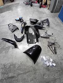 Viene venduta con tutto e di più. Ci sono tamponi rizoma ( non Lizoma), copri carter, pedane Walter moto con modifica per luce freno, scarico zard omologato strada, con collettore modificato, filtro bcm, centralina. Leve freno e frizione, tappi olio freni, cerchi doppi, una coppia nero e bianco, una coppia oro originali, più regalo strisce adesive, rosse per cerchi oro, nere per cerchi bianchi e bianche per cerchi neri, ci sono 2 cupolini, quello street, originale, quello speed in resina perfettamente verniciati come la moto. 2 sterzi con pieghe e angoli diversi neri. Fari originali cromati perfetti, più una parabola luce di ricambio, parabole nere con fari LED, faro kawasaki z800 ...ci sono montati gli specchietti a manubrio, ci sono tutte le parti, dalle plastiche dietro alle laterali, frecce rizoma ( non lizoma), più tutti pezzi doppi, vasca sotto originale, cover sella, con laccio, viti, in base a come la si vuole. Pedane originali, leve originali, scarico originale, specchietti originali, coppia di pasticche posteriori, ( quelle montate sono ancora buone). Corona ergal +2 denti. Ammortizzatore di sterzo ( solo la staffa per mettero 250 euro), porta targa corto, pedane dietro originali piu le corte ( piu telaio per le borse) e tanto altro.