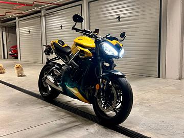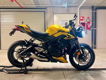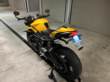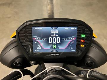 La moto è accessoriata con diverse componenti aggiuntive tutte originali Triumph: