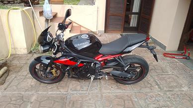Bellissima triumph street triple 675 2013 versione R con sospensioni completamente regolabili in precarico molla, in idraulica compressione, estensione, gommata pirelli diablo rosso 2 al 90%, bilancieri manubrio e tamponi forcellone e forcella lightec, portarga nuovo ancora da montare lightec, scarico arrow orginale triumph, (a corredo tutti i pezzi originali) .Tagliando olio e filtro eseguito a dicembre 2025