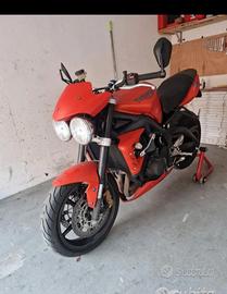 vendo triumph street triple 675r del 2010. moto in ordine eseguito Sostituzione kit catena corona pignone, pastiglie ant nuove piu olio freni. Monta scarico basso con l omologazione insieme alla moto do anche l'unghia monoposto e i 2 cavaletti.