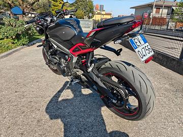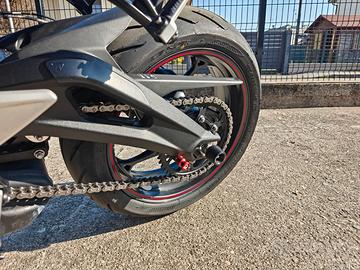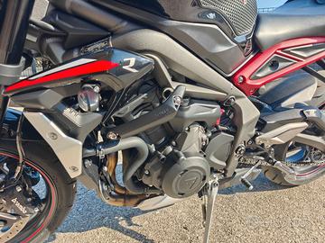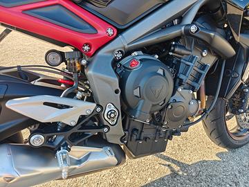 Vedo per scarso utilizzo Triumph Street Triple 765 R. Moto con 11035 Km, sempre tagliandata in concessionaria Triumph ufficiale nei tempi stabiliti dalla casa madre. Ogni tagliando è segnato nel libretto di uso e manutenzione della moto. Tagliando 2026 già fatto e bollo 2026 già pagato. Sempre tenuta su cavalletti alza-moto posteriore e anteriore (compresi nel prezzo) durante periodo invernale. Tenuta nel Box privato tutto l'anno. Batteria sostituita a Marzo 2026 per usura della vecchia (batteria Yuasa come da prima installazione da casa madre). Gomme Bridgestone Battlax-s21 con appena 200 Km e vergognosamente "non chiuse". Accessori installati: - kit di protezioni carter e frizione originale Triumph A9618132 - kit di protezione forcellone posteriore originale Triumph A9640188 - kit di protezione tamponi paratelaio originale Triumph A9788013 - tappo olio con astina originale Triumph A9610128 - tappo olio motore Evotech - attuatore frizione originale Triumph A9610125 - protezione forcellone e forcella Evotech - portatarga in alluminio anodizzato nero Tail Tidy Evotech Performance - nottolini per supporto cavalletto posteriore Evotech - adesivi da serbatoio antiscivolo One Design - supporto per smartphone per piastra della forcella Quad Lock