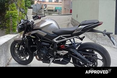 TRIUMPH Street Triple 765 R color silver del 2023. Il motociclo è alimentato a Benzina e ha un cambio Meccanico. Pratica: Ben tenuta---tagliandata---garantita---finanziabile anche senza acconto --con o senza maxi rata finale---consegna in tutta Italia ---monoposto omaggio (nuovo) Accessori : ABS, Frecce bianche, Mappe road - rain, Monoposto, Quickshifter , TCS