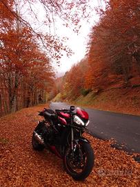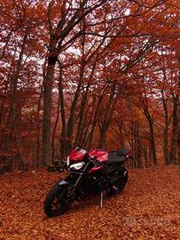 Vendo Triumph Street Triple RS anno 2023. Km 18.000. Secondo proprietario. Scarico completo con chiocciola Zard. Semimanubri. Pedane arretrate. Borse laterali SW MOTECH (non presenti in foto). Cupolino in tinta. TUTTE LE PROTEZIONI anti caduta. La catena ha 1000km DID serie oro Pneumatici con 3000km Pirelli diablo rosso corsa II. Appena tagliandata per la stagione estiva, purtroppo vendo per trasferimento improvviso imminente.