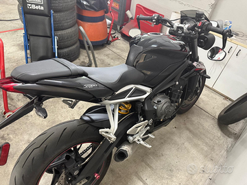 Vendesi Triumph Street Triple RS del 2017 con 17000 km.Pneumatici Pirelli Diablo Rosso 4 con 1000 km.Tagliando completo effettuato da 1000 km ad Aprile 2025,pasticche anteriori nuove e batteria nuova.Porta targa omologato Triumph in alluminio. Cambio elettronico e 4 mappature motore di serie più impianto frenante Brembo M50.Unico proprietario.