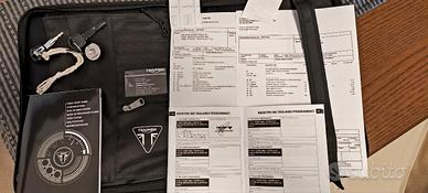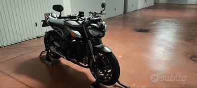 Vendo splendida Triumph Street Triple 765 RS, immatricolata a giugno 2023 con 18.000 km circa e unico proprietario. La moto è la versione RS e quindi il top acquistabile per questo modello che prevede: sospensioni ohlins posteriori e Showa anteriori pluriregolabili Pinze freno anteriori Brembo Stylema 130 cv a libretto (rispetto ai 120 delle altre versioni) Cambio up e down elettronico Display TFT a colori avanzato con maggiori funzioni Puntale RS Cover sella monoposto La moto è in condizioni eccellenti, tagliandata regolarmente in casa Triumph e chilometri certificati. Disponibili tutte le fatture dei tagliandi, doppie chiavi, libretti e porta documenti rilasciati alla consegna della moto in Triumph (tutto presente in foto) La moto viene usata solamente nel periodo che va da Aprile a Ottobre. I restanti mesi rimane ferma in garage. Non necessita di alcun intervento. Accessori e dotazioni extra: Portatarga aftermarket (disponibile l'originale) Nottolini cavalletto Protezioni forcellone posteriore Protezioni carter motore Protezioni forcelle anteriori Tamponi proteggi telaio Moto pronta all'uso, ideale per chi cerca una naked sportiva senza compromessi. Non ha bisogno di presentazioni: prestazioni e ciclistica al top. Prezzo leggermente trattabile. Astenersi perditempo, vendo per cambio tipologia. Contatti via messaggio o telefono per ulteriori info o per visionarla dal vivo.