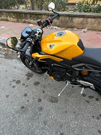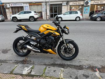 6000 km condizioni pari al nuovo, come visibile in foto gommata nuova con Continental sport attack 4, fattura dimostrabile. 2 tagliandi effettuati, l'ultimo eseguito da meno di 1000 km, portatarga sportivo originale Triumph, cavo usb al manubrio e regalo quadlock per supporto telefono al manubrio già installato.