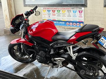 Vendo Triumph Street Triple 765 S anno 2018 con 20.000 km. Moto in ottime condizioni generali, sempre tenuta con cura. 🔧 Tagliandi eseguiti regolarmente 🛞 Gomme appena sostituite (nuove) 📄 [inserisci revisione se disponibile] Monta scarico SC Project che offre un sound sportivo e coinvolgente. Moto pronta all’uso, nessun lavoro da fare.