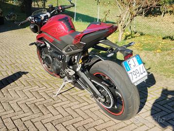 Triumph 765 RS del 2024 km 6870 ancora in garanzia, appena tagliandata, come nuova. Accessori: griglia protezione radiatore in alluminio, cupolino e parte superiore serbatoio tipo carbonio, lucchetto per casco al manubrio.