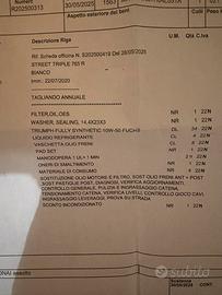 Tagliando Triumph Maggio 2025 + altri interventi presenti nelle foto