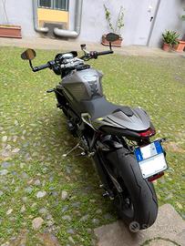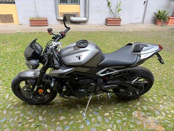 Vendo Triumph street triple R di settembre 2023. Io sono il primo proprietario, la moto è in ottime condizioni ed ha percorso 5536km, ha fatto 3 tagliandi tutti in concessionaria dov’è è stata acquistata (l’ultimo a marzo 2026). Monta molti accessori come: Scarico completo omologato in titanio Spark konix evo con db killer rimovibile Pompa freno radiale brembo rcs 19 (montata in concessionaria) e leva frizione barracuda nera Carter frizione trasparente ducabike con spingi disco rosso Ammortizzatore di sterzo ohlins con supporto in cnc ducabike Cupolino, puntale inferiore e sella monoposto originali Triumph Tamponi forcella, forcellone e telaio, para carter Tappo serbatoio sgancio rapido in cnc Paratacco, pinnetta sotto catena, copri pignone e parafango posteriore in carbonio vero Portatarga lightech con frecce barracuda Nottolini alzamoto con cavalletto Flangia serbatoio con borsa givi Pedane nere barracuda Specchietti bar end stile modello Rs ma non sono originali Triumph Gomme Pirelli diablo supercorsa sp v2 con circa 2000km Mi sarò sicuramente dimenticato qualche piccolo altro pezzo qua e là, fornisco tutti i pezzi originali della moto. Ad aprile è stato sostituito il galleggiante serbatoio in concessionaria quindi solo su quel pezzo si ha la garanzia di 2 anni Insieme fornisco un gruppo trasmissione completo nuovo della did Se si è interessati sono disponibile a fornire altre informazioni o foto e naturalmente farla vedere dal vivo.