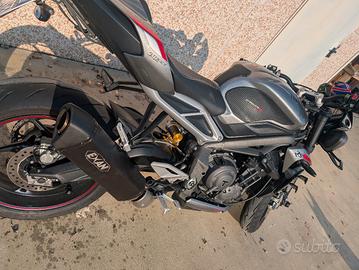 A malincuore vendo stupenda Triumph street triple RS per cambio tipologia di moto. Moto con appena 22k km, tagliandata, revisione fatta a febbraio 2025, bollo pagato a giugno 2026, gomme con circa 2k km Pirelli siamo rosso IV. Effettuata la revisione delle forcelle per un corteco che non teneva, kit aerodinamico sotto faro e laterali. Scarico Exan omologato per uso stradale più innumerevoli accessori come para radiatore, paratelaio, tamponi ecc ecc. Dispongo di pedane arretrate regolabili mai montate e accessori originali