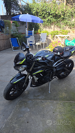 Vendo Triumph street triple rs 765 per cambio moto, monta scarico akrapovic, pedane rialzate bonamici, portatarga corto, frecce dinamiche barracuda, paracarter gbracing, monoposto e sellino posteriore. Tenuta da amatore, appena effettuato il tagliando dei 16'000 km, gomme e pasticche sostituite 3000 km fa, tenuta sempre al coperto. Nessun tipo di problema. Accetto scambi con 600 supersport 2008 o + con differenza a mio favore.