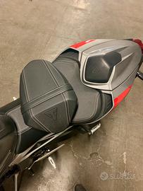 Vendo, per cambio categoria, Street RS colorazione silver ice. Unico proprietario, sempre tagliandata Triumph, monta oltre alla dotazione di serie (es.: cambio quick shift, sella monoposto e passeggero, ammortizzatore posteriore ohlins, freni brembo,....) i seguenti accessori: - para telaio Triumph; - paraforcella Triumph; - para radiatore Street Triple RS; - modulo bluetooth Triumph (include navigatore, possibilità di effettuare e ricevere chiamate ed sms, gestire riproduzione musicale, gestire go-pro,...); - cornetti d'aspirazione Venturisystem; - filtro aria BMC race; - supporto cambio BRX meccanica; - batteria al litio; per un totale di ben oltre 1.000 euro. A maggio 2025 ho effettuato, presso Triumph, il temuto tagliando dei 20.000 km che prevede lo smontaggio del motore per regolare il giogo valvole ed ulteriori controlli (costo 550 euro), ció implica che per altri 20mila km occorrerà effettuare solo manutenzione ordinaria. Scambio solo con bmw s1000xr dal 2024 con differenza a mio carico. Posso inviare ulteriori foto e video. La moto viene usata quotidianamente per spostamento casa-lavoro (5 km).