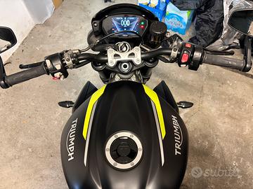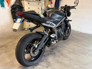 Vendo come da titolo Street Triple 765 RS versione restyling del 2020 top di gamma con quickshifter, 4 mappe motore, sospensioni Showa completamente regolabili all'anteriore, mono Ohlins STX40, freni con pompa radiale e pinze monoblocco Brembo M50. La moto è in perfette condizioni estetiche e meccaniche, sempre tenuta in box e all'asciutto. Gomme Bridgestone Battlax S22 al 70% e pastiglie freno/dischi anteriori sostituiti meno di 3000 km fa insieme al tagliando. La moto monta i seguenti accessori: -portatarga Evotech -tamponi paratelaio Barracuda -dischi anteriori Galfer a margherita -nottolini cavalletto alzaruota posteriore Evotech -unghia monoposto Triumph (sella passeggero presente) -copricarter GBracing Revisione in scadenza a Luglio 2026, bollo pagato. Vendo per cambio genere, prezzo trattabile. Possibile ritiro anche in provincia di La Spezia