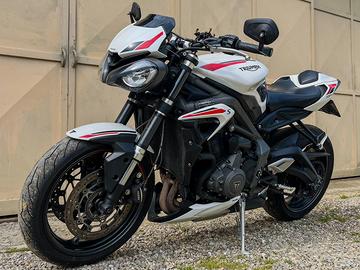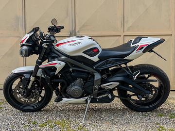 Vendo per cambio di tipologia moto, Triumph Street Triple S 660 2021 per patente A2 unico proprietario. Depotenziata a libretto, ma ha la potenza sbloccata, quindi eroga 95cv. (possibile depotenziarla nuovamente). La moto si presenta in ottime condizioni, sempre tagliandata da officina autorizzata Triumph per il mantenimento della garanzia e sempre tenuta in garage (in inverno sui cavalletti e coperta). Mai dato un problema, sempre perfetta. Monta svariati accessori, tra cui: - Gomme Pirelli Diablo Rosso III nuove DOT 2026 - Pastiglie freno anteriori Accossato - Sella monoposto e sella passeggero - Puntale inferiore - Adesivi di protezione per il serbatoio e tappo benzina - Pellicola di protezione strumentazione - Indicatori di direzione Lampa Nano LED omologate - Faro posteriore fumè con indicatori di direzione integrati - Specchietti bar end - Portatarga pieghevole Lightech - Cupolino lip anteriore oscurato - Piedini per cavalletto ruota posteriore - Griglia protezione per radiatore - Filtro aria Hiflofiltro nuovo - Olio motore Castrol Power1 nuovo - Filtro olio K&N nuovo. Ovviamente sono in possesso di tutte le parti originali e anche dell’acceleratore per il depotenziamento, in caso la moto si voglia riportare a 35kw. Tag: Triumph, Street Triple, Speed Triple, Daytona, 650, 660, 675, 765, 1050, 1200.