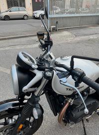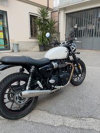 Vendesi Triumph Street twin 900 con pochissimi chilometri,appena sostituito pastiglie anteriori,pastiglie posteriori,olio freni,olio motore,filtro olio e filtro aria. Revisione ministeriale valida fino al 2028 Prezzo poco trattabile visto le condizioni impeccabili della moto