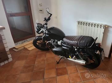 Triumph Street Twin 900 05.19 - versione 65 cv Km 14200 circa - ultimo tagliando 07.25 -revisione luglio 25 Accessori : sella standard + sella confort originale, copri faro originale, frecce led originali, doppio cupolino di cui uno originale trasparente più alto, specchietti bar end, manopole botticella originali, supporti borse laterali, borse laterali morbide, maniglione passeggero. Tenuta sempre al coperto.