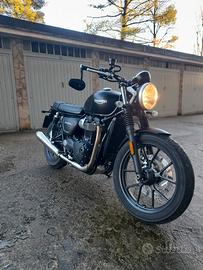 vendo Triumph street twin 900 anno 2018 con soli 14800 km,moto sempre tagliandata i Triumph, con fatture e scontrini ,monta sella piatta Triumph, specchietti bar end Triumph, loghi su entrambi i carter,e riser manubrio con piastra ricavata al cnc originale Triumph, possibilità di farla vedere anche al vostro meccanico senza alcun problema, per chi fosse seriamente interessato il prezzo è trattabile, solo dopo averla visionata. No perditempo.