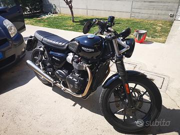triumph street twin del 2016 con 20000km. unico proprietario. moto con tutti i tagliandi certificati concessionaria triumph padova. gomme nuove con meno di 1000km. mai incidentata, perfetta in tutto. optional: sella, para coppa, leva cambio, serbatoio liquidi freno anteriore, manopole, parafango posteriore con faro e porta targa, frecce anteriori e posteriori, para ginocchia su serbatoio e specchietti cafe racer, tutto omologato! compreso nel prezzo tutte le parti originali! per favore vi chiedo di essere realistici!!!