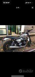 Triumph Street Twin edizione limitata Ec1 optional: specchietti bar end, cornice del faro anteriore cavalletto centrale e frecce sia anteriori che posteriori a led. Sempre tagliandata Triumph. Km 3.500 tenuta sempre in garage. Mai preso pioggia.