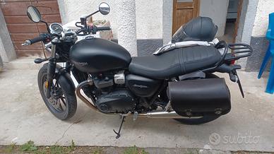 OCCASIONE Moto immatricolata 2017 Usata poco e tenuta maniacalmente. Motore bonneville 900 eccellente, affidabile, oltre 30 km/litro, manutenzioni regolari, documentate. Si vende con tagliando svolto da pochi km e gommata nuova, valore oltre 500 euro in fattura. Il prezzo comprende 2 borse originali laterali in cuoio (una mai usata) e relativo telaio, porta oggetti magnetico da serbatoio, retina porta pacchi posteriore. Altri accessori BOLLO IN CORSO DI VALIDITÀ REVISIONE VALIDA FINO A MAGGIO 27 Mai incidentata, vendo per problemi fisici. A disposizione due caschi quasi nuovi (taglia s/m) con mentoniera estraibile in scatola originale. Un giubbotto imbottito taglia M. Per questi articoli prezzo a parte su richiesta. No perditempo, disponibile a trattare il prezzo con persone serie e interessate. Visite sempre disponibili tutti i giorni previo appuntamento
