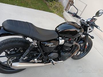Triumph Street Twin 900 colore nero in perfette condizioni con pochi chilometri all'attivo.