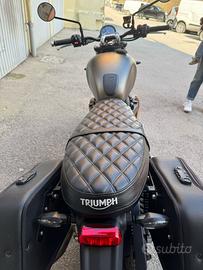 Come da titolo vendo Triumph StreetTwin 900 con 65 cavalli tenuta maniacalmente da amatore senza alcun graffio o usura , tenuta sempre in garage, con 4312 km, sella in pelle con trama a rombi, griglia al faro anteriore e parafango modificato , scarico originale, 2 borse laterali e antifurto con gps e app già installato