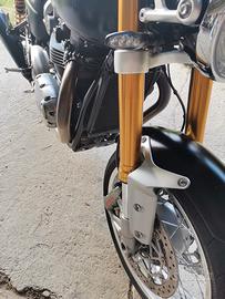 Vendo per inutilizzo Triumph Thruxton 1200 R notevolmente accessoriata, doppia cinghia reggi serbatoio (una forata, l'altra liscia), tappi olio, cupolino rialzato, cupolino fume, paracatena, frecce Led, paramotore, specchietti, scarichi Akrapovic acquistati per 1300 euro. Gomme Pirelli sostituite di recente. Possiedo tutte le parti originali. Tenuta maniacalmente.