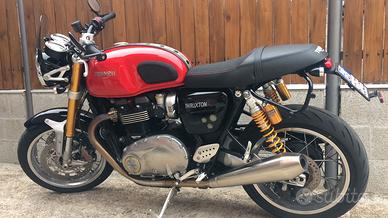 vendo thruxton 1200 R del 2016 con km 57000 tagliandi eseguiti sempre regolarmente accessoriata ,antifurto,manopole riscaldate,borse con telaietti,manubrio con piastra free spirits,catallizzatore free spirits, luce faro a led, portatarga personalizzato, frecce a led ,navigatore,cupolino .