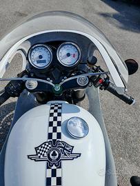 Vendo Triumph Thruxton 900 Limited Edition ACE caffe London pochi esemplari fatti , la moto presenta tante modifiche per renderla piu cafe racer - focelle anteriore Gsx suzuki 1000 per poter montare doppio disco - Pompa freno radiale triumph daytona e pinze 3 pistoncini - ruota anteriore riraggiata per doppio disco - marmitte artigianali fatte a mano - sella 1 posto e mezzo con replica copulino ACE caffe london nuova - ammortizzatori posteriori yess regolabili - cupolino replica thruxton cup con doppio faro - gomme nuove Tutte le modifiche sono state fatte in officina autorizzata , senza modificare telaio originale impianto elettrico, infatti insieme vendo tutte le parti per riportare la moto perfettamente originale in tutte le sue parti - l ultima foto e come si presenta originale con tanto di targhetta special edition sullo sterzo Prezzo trattabile Solo interessati e appassionati